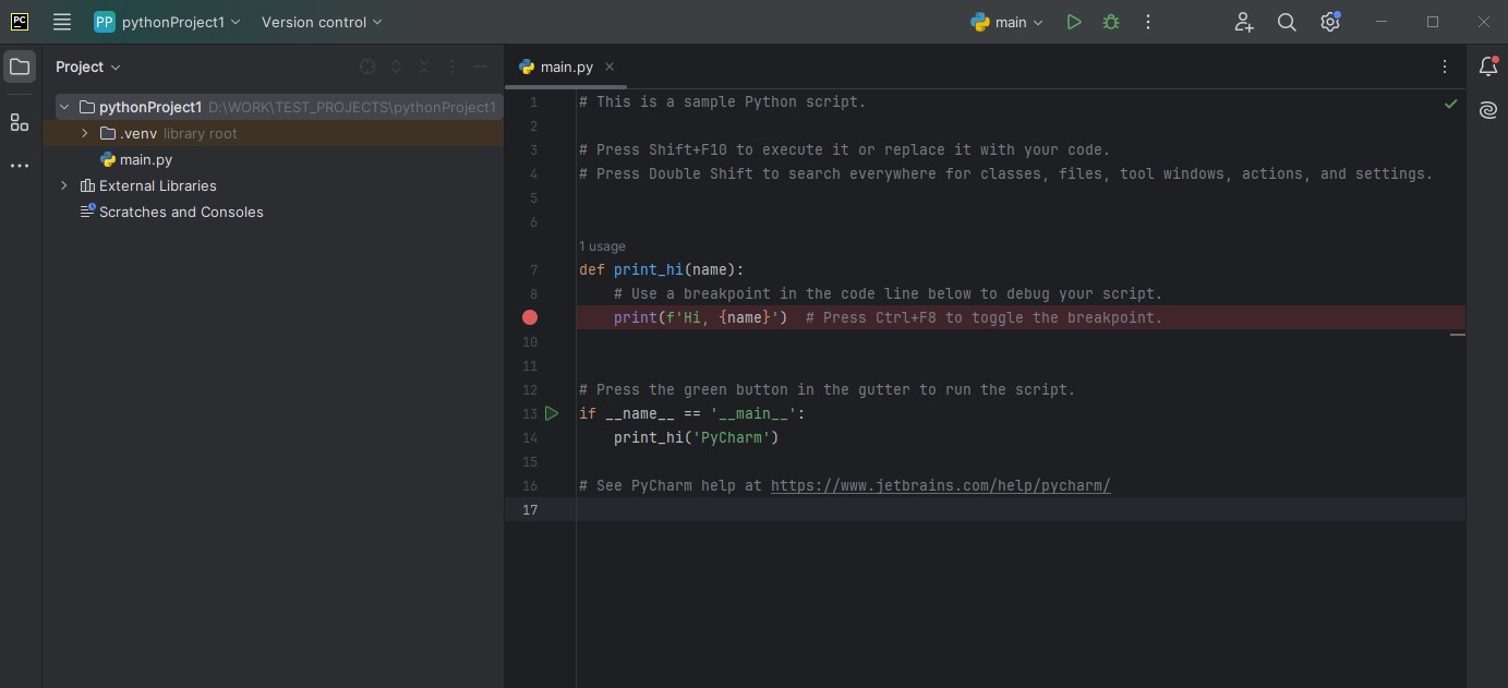 Всё, поздравляю! Теперь ваш PyCharm готов к работе: