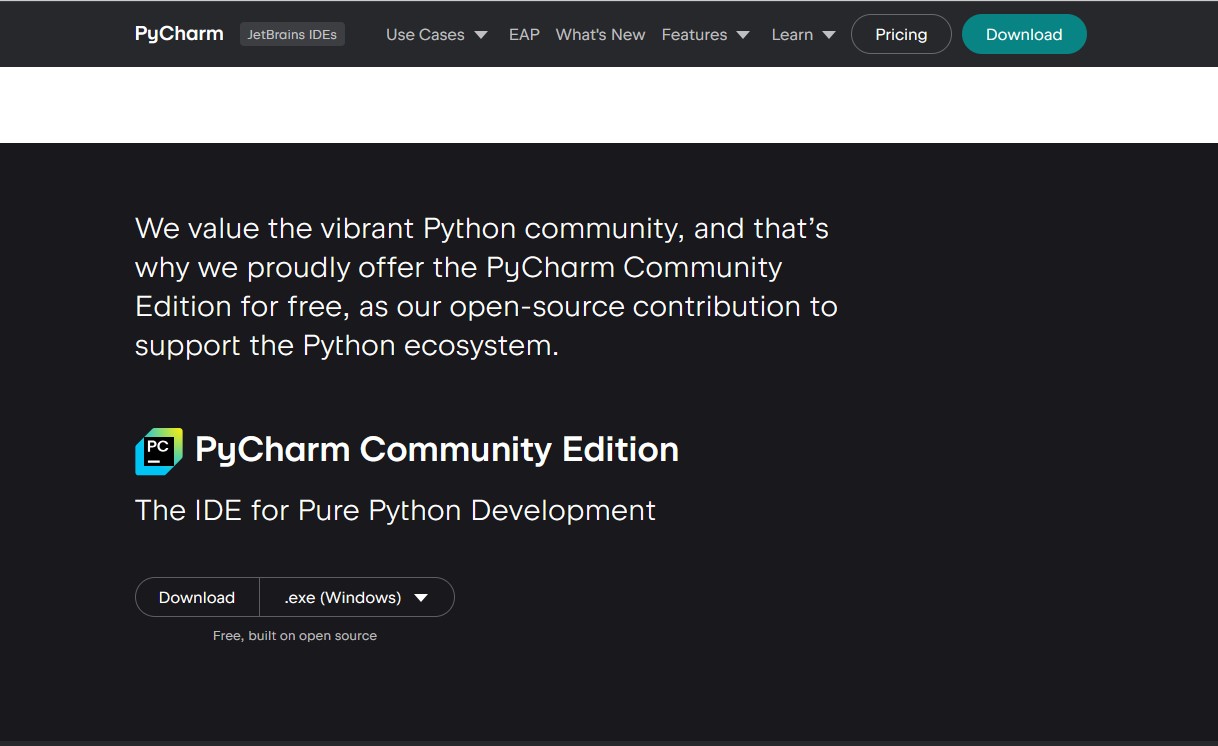 Работать с Python можно в различных редакторах кода, однако лучше всего использовать специальную IDE (интегрированная среда разработки) - PyCharm, которая позволяет сделать процесс написания кода более удобным и легким. Скачать ее можно из официального сайта разработчика . На открывшейся странице выбираем PyCharm Community Edition и скачиваем установщик:
