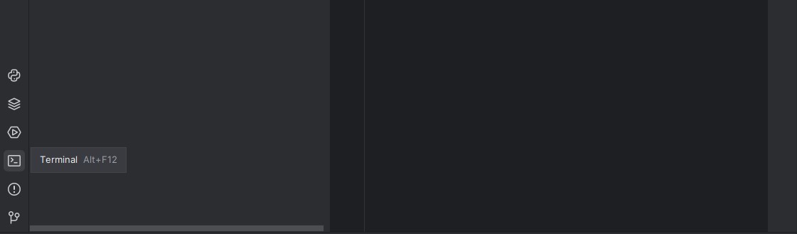 Для того, чтобы увидеть выполняющийся код, откройте окно с терминалом, кликнув по иконке, находящейся слева снизу: